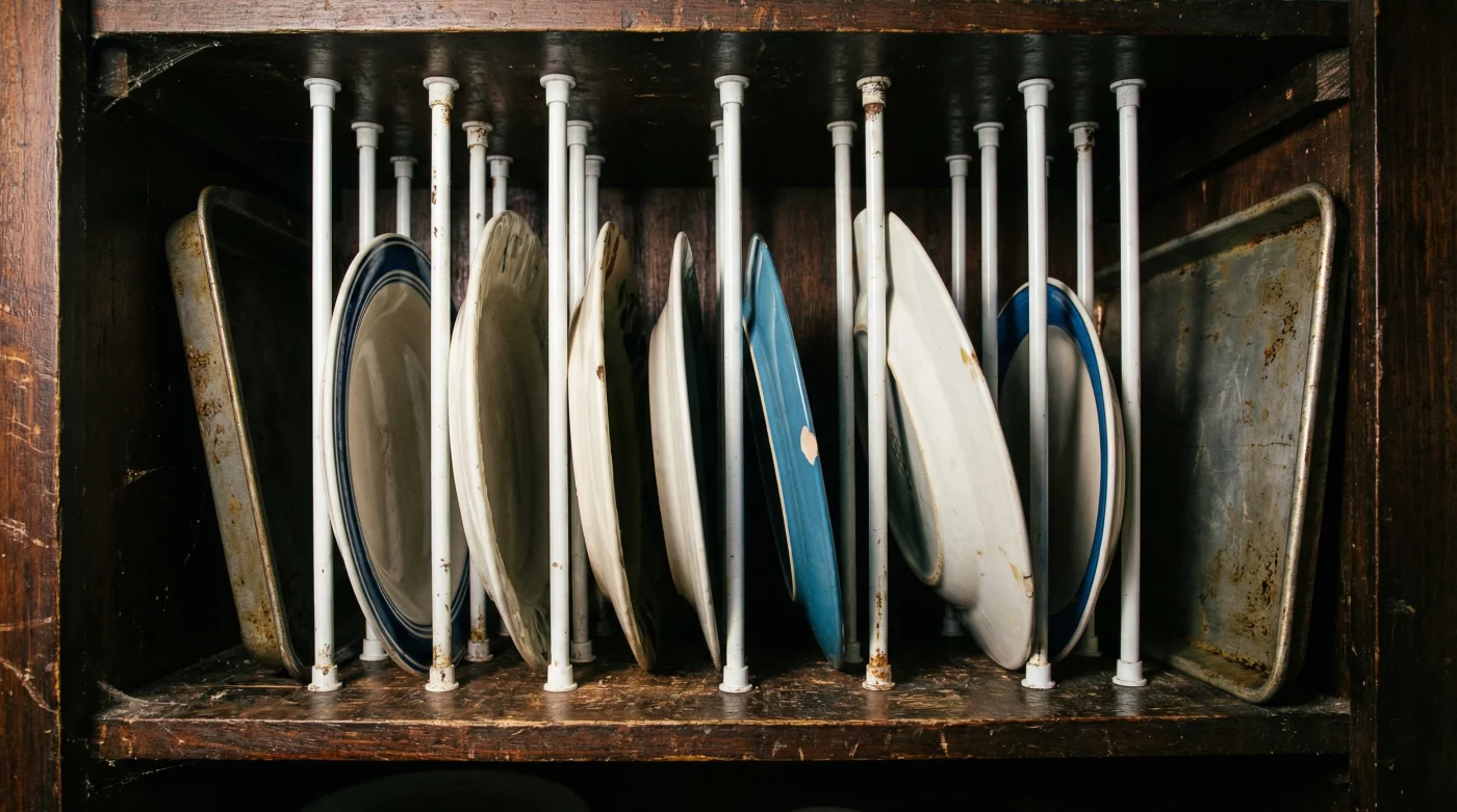 For the Entertainer: You are dealing with large, awkward platters that only see daylight on Thanksgiving or during summer barbecues. You need wide, forgiving slots. Angle the rods slightly if the platter is taller than the shelf height, creating a leaning easel effect that safely cradles the heavy ceramic against the side wall.